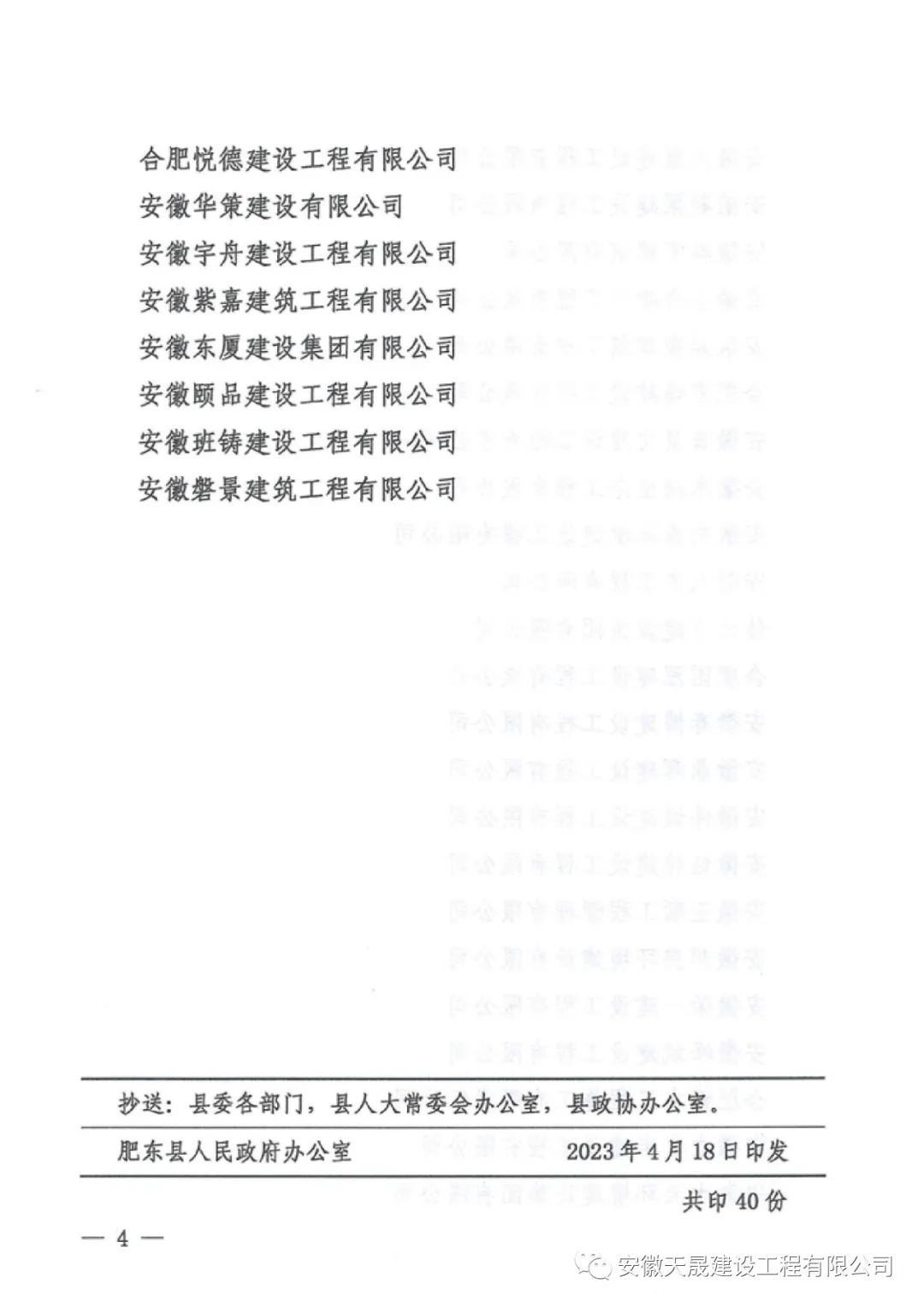 安徽天晟建設喜獲肥東縣人民政府授予兩項榮譽稱號